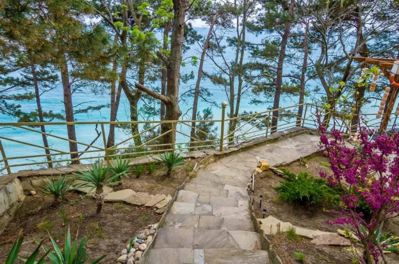 Отель расположен всего в 200 метрах от моря (на высоте 32 м от уровня моря) и имеет прямой выход к пляжу по тенистой дорожке.